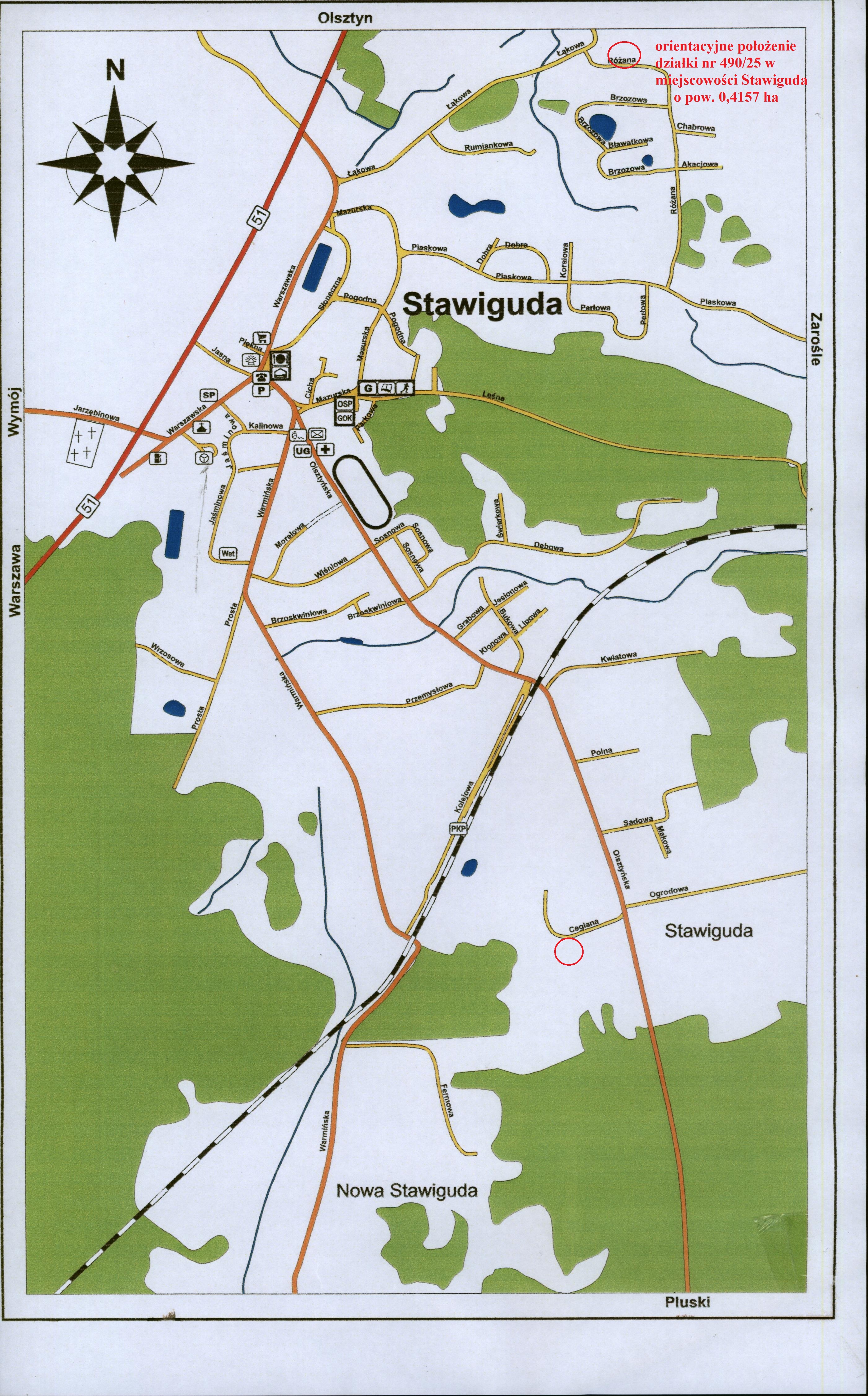 Na sprzedaż niezabudowanej nieruchomości gruntowej, pod zabudowę usługową z dopuszczeniem funkcji mieszkaniowej jako uzupełniającej, położonej w miejscowości Stawiguda, przy ulicy Ceglanej, w powiecie olsztyńskim, województwo warmińsko–mazurskie, oznaczonej w rejestrze gruntów jako: